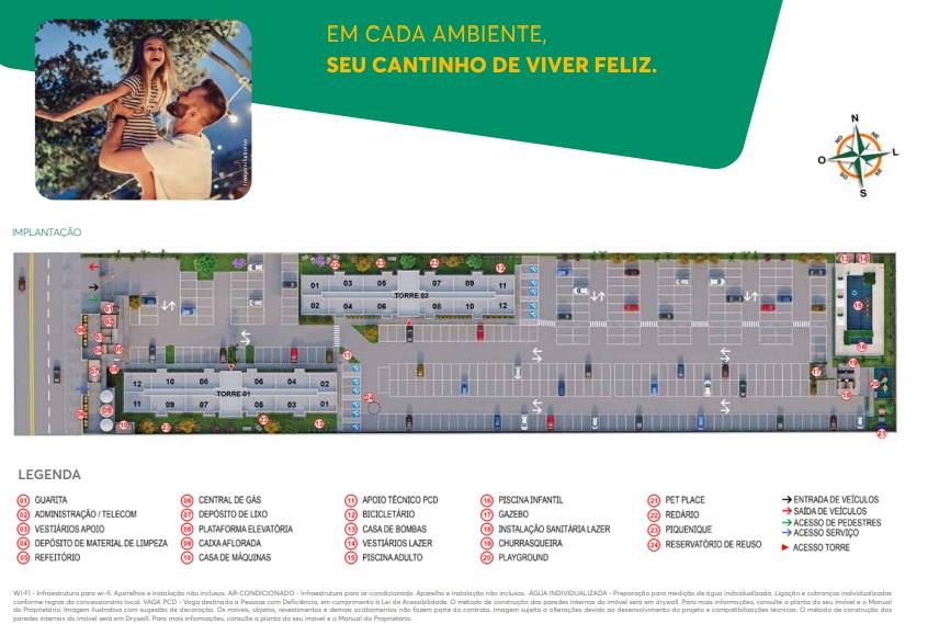 Os espaços foram pensados para unir funcionalidade e bem-estar, e a área de lazer é completa, com piscinas adulto e infantil, espaço gourmet, gazebo e playground. É o convite ideal para transformar cada dia em diversão e tranquilidade, sem sair de casa.
