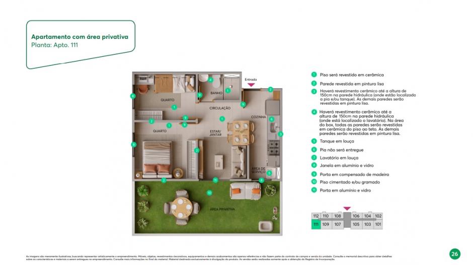 Área privativa: 19,42m² a 22,49m²